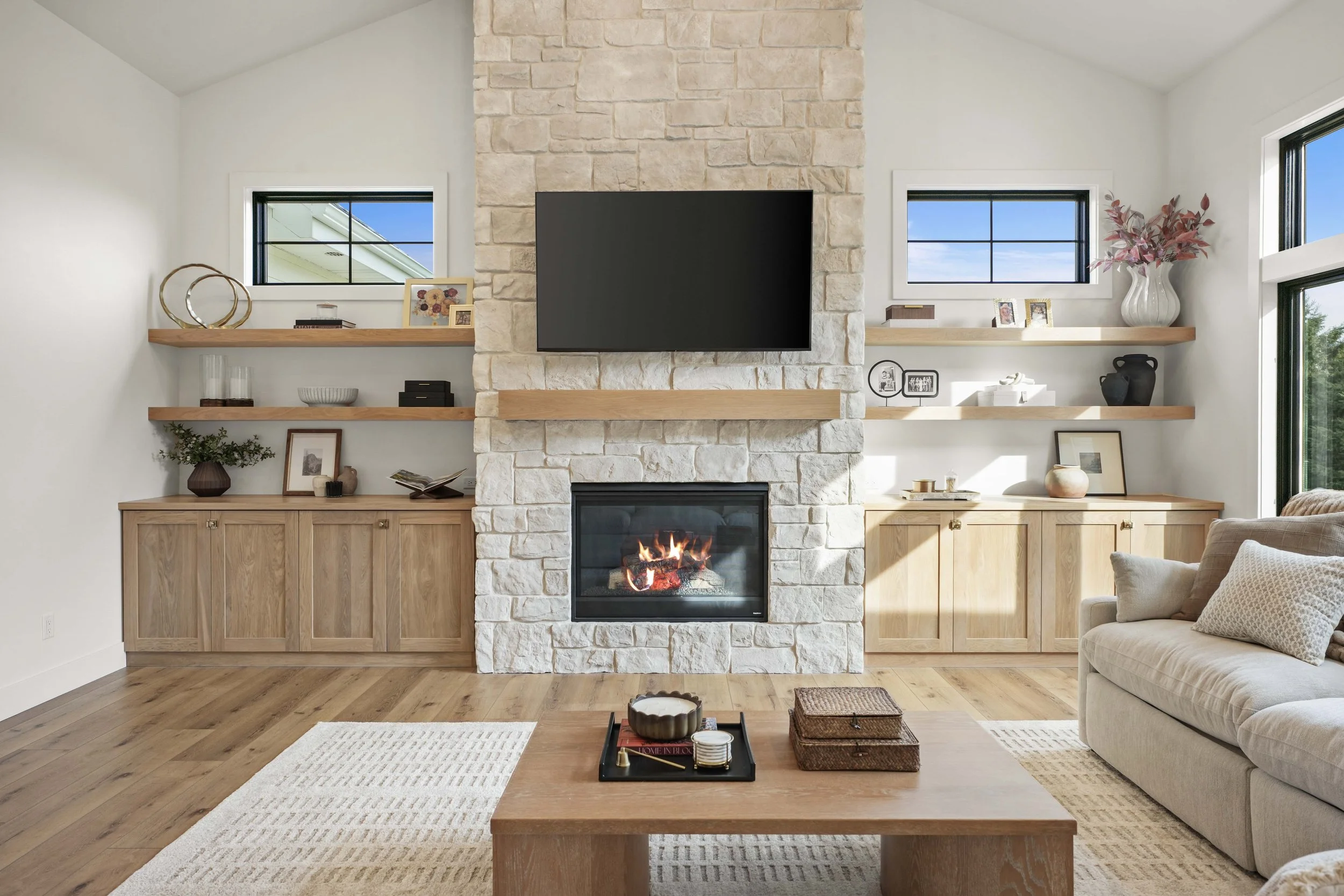Living rooms are a place for friends and family to gather. Coffered ceilings, fireplaces, and large windows are common features in Urso Builders living rooms. We create inviting living rooms to host game nights, holiday parties, or just cozy evenings by the fire.